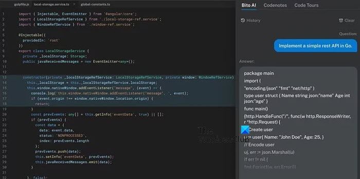 Bito AI 通过与 VS Code 集成以实现无缝 AI 结对编程,从而简化了开发工作流程。它支持多种编程语言和框架,并根据用户交互不断增强其建议。