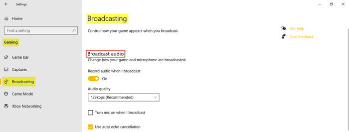 通过广播设置,您可以控制游戏在广播时的显示方式。 您可以在广播时录制音频并设置音频质量。