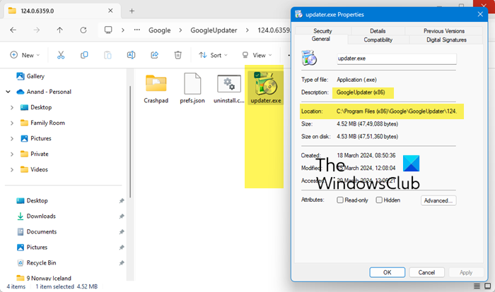 用实际的PC用户名替换用户名。检查是否存在GoogleUpdater文件夹。如果出现该文件夹并因某种原因而重命名,请将其重命名回GoogleUpdater。另外,确保updater.exe文件下存在。