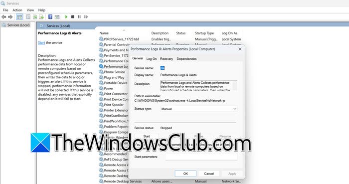 设置性能日志和警报服务的启动类型是手动的从启动时自动启动和访问注册表hives恢复它
